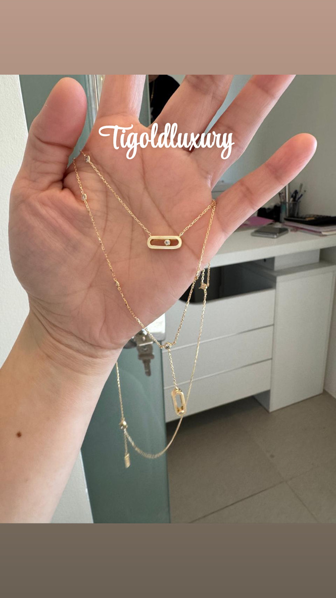 Double layer Messika Necklace Chain Comes with stones between the chain, it is an 18k gold Necklace Chain for all Occasions. 7.69 grams only